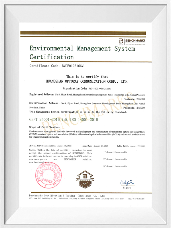 Optoray är Kina 10G SFP+SR/LR/ER/ZR Leverantörer av optiska transceiver. Vi är ett professionellt högteknologiskt företag som ägnar sig åt 10G SFP+SR/LR/ER/ZR Optisk transceivermodul och underkomponent FoU, produktion och försäljning etablerades 2007 i Huangshan Economic Development Zone, Anhui-provinsen, med FoU-centret i Shenzhen! Den första fasen täcker en yta på 10 000 kvadratmeter. Optoray är en professionell tillverkare av 10G SFP+SR/LR/ER/ZR Transceiver Company Med ett komplett utbud av optiska transceiver-moduler och underenheter från 1 Gbps till 400 Gbps, omfattar applikationer datakom, telekommunikation, videoövervakning, FTTX... och mer. Med vårt utmärkta värde i "prestanda, kvalitet, pris och service" har vi många värdefulla kunder i Kina och utomlands som Nordamerika, Sydkorea, Indien och Vietnam! För närvarande har vi redan dussintals relevanta patent och har godkänt ISO9001:2015 kvalitetssystemcertifiering och FCC, CE, RoHS testcertifiering.